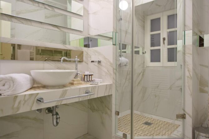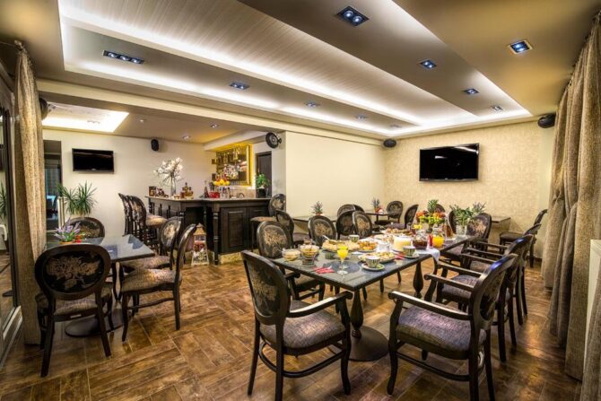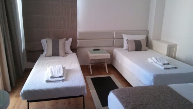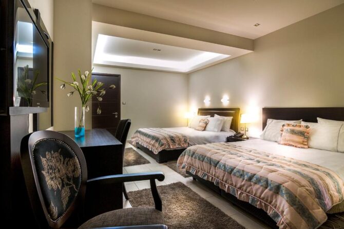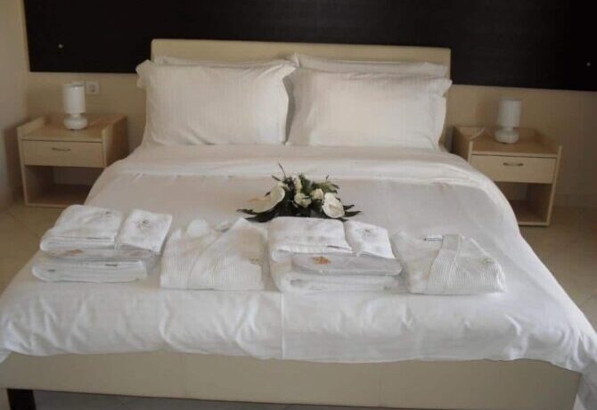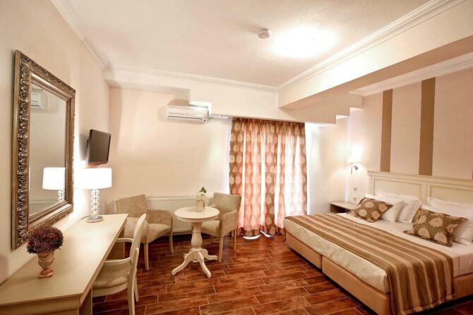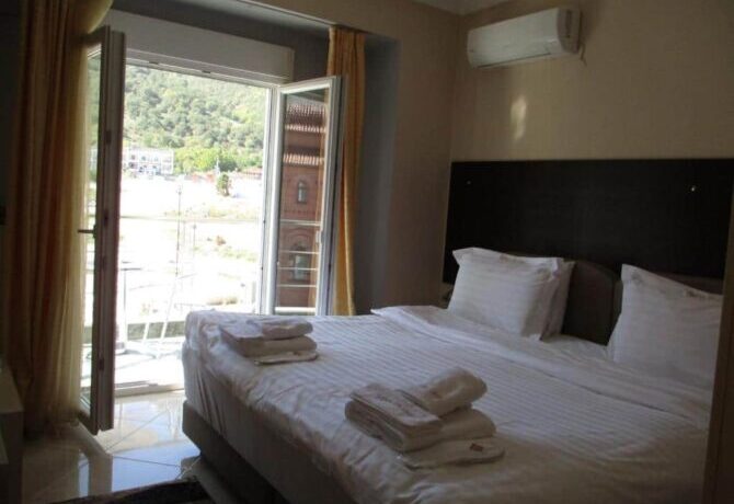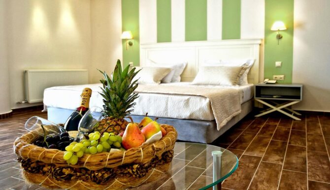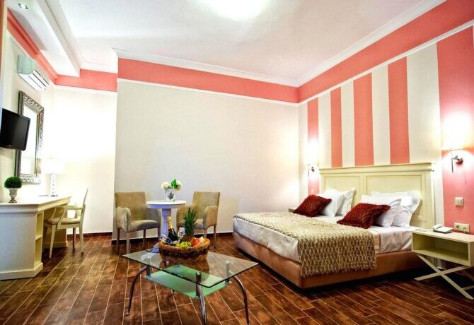 При сохраненной эстетике под старину Orologopoulos Mansion – современный отель с кондиционером, телевизором и совмещенным санузлом в каждом номере. Тут удобные кровати, хорошая звукоизоляция и цены значительно выше средних по рынку. В пансион входит завтрак. По отзывам, ничего особенного – много сладкой выпечки, апельсиновый сок, хлопья, омлет. Преференции и скидки для детей не предусмотрены.