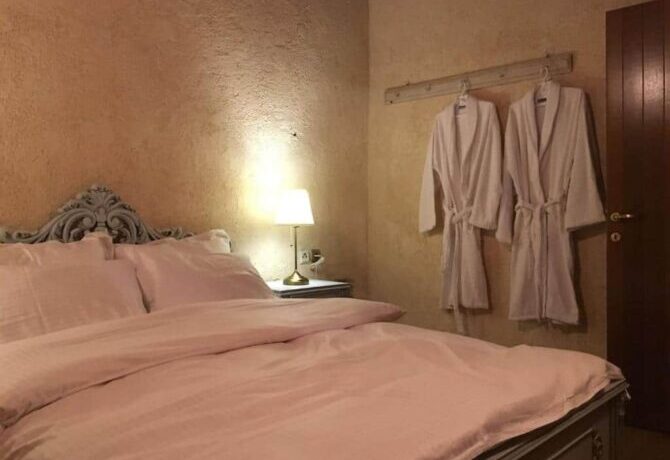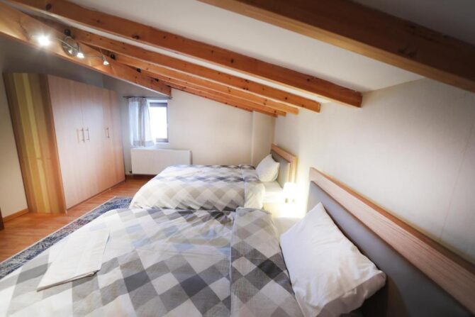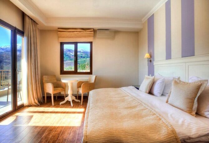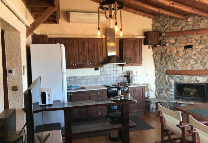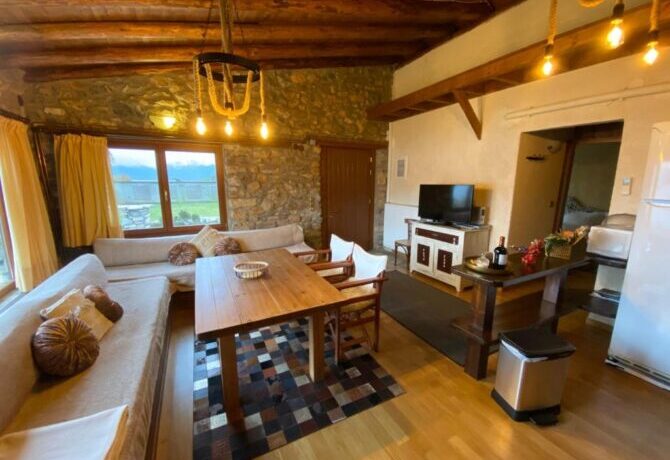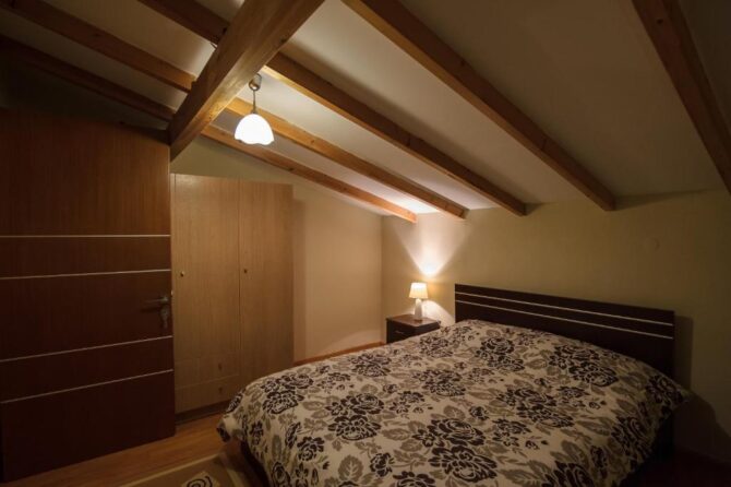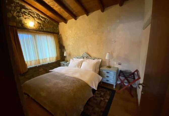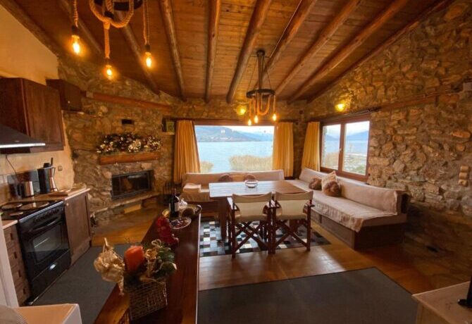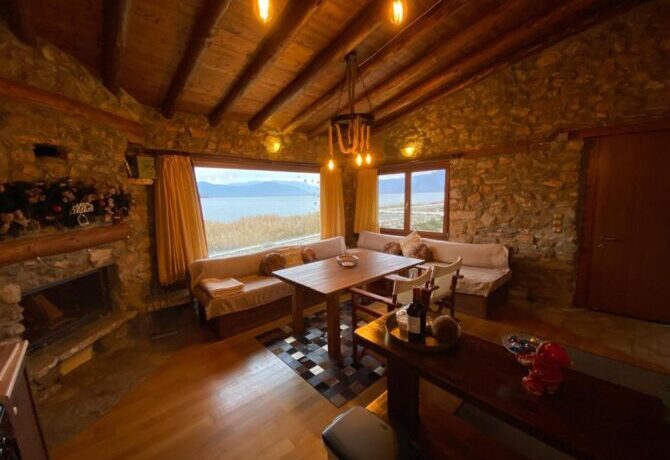 Небольшой уединенный полностью укомплектованный домик, построенный в стиле традиционной македонской архитектуры – это даже не отель, это скорее коттедж, который можно снять, чтобы провести тихий отпуск на берегу горного озера. Собственная кухня-студия, большая ванная комната со всеми необходимыми принадлежностями и уютная спальня с деревянной кроватью плюс потрясающие виды на озеро и горы — все это рассчитано на четырех человек. Можно брать домашних питомцев, но в пределах разумного. Радушный хозяин, кстати, предлагает переноски для котов и мелких пород собак.