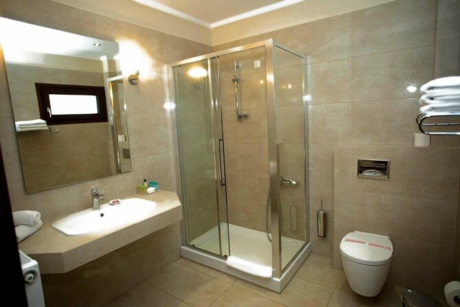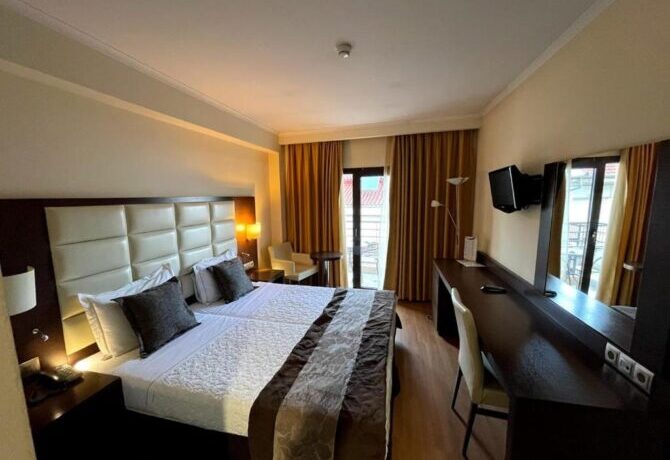 Макс, Москва: «Мы, как многие, прилетели в Касторию за шубой – все же в два раза дешевле, чем в Москве. Esperos Palace бронировали наобум, в целом нормально, но больше не приедем. Недорогое место в самом центре, но нуждается в ремонте. Когда мы заселялись, в номере протекал унитаз, повсюду была вода. На респешене пробовали сопротивляться, но все же номер заменили. Что интересно, в отеле не было WiFi, только проводной интернет в номерах. Да, отличный, но как-то диковато. Говорят, проблемы с безопасностью данных».