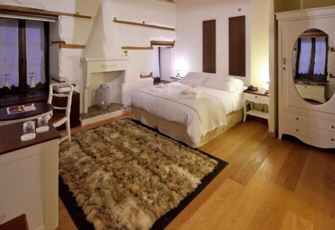 Милый бутик-отель Orologopoulos Mansion, оформленный в традиционном греческом стиле, расположен на площади Дольцо недалеко от озера (150 м). Во время строительства перед дизайнерами поставили задачу: возродить дом семьи Орологопулу на улице Пихеон, сохранив аутентичную атмосферу. В конечном итоге историческую ценность особняка XIX века удалось сберечь, создав при этом комфортабельное пространство – отель на 9 номеров (то есть максимум на 22 человека).