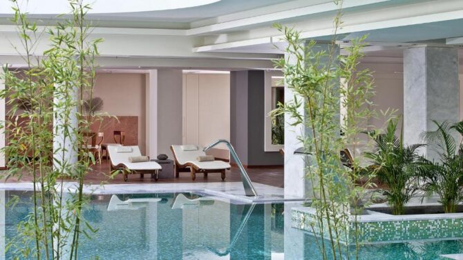 - спа-комплексу с закрытым бассейном, массажными кабинетами, салоном красоты, банями и тренажерным залом;