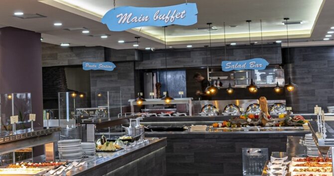 «Галини Палас» работает по концепции «все включено». Блюда подаются в основном ресторане. Напитки баров доступны в неограниченном количестве. При желании гости отеля могут ужинать или обедать во втором ресторане, работающем «по меню» («а-ла-карт»).