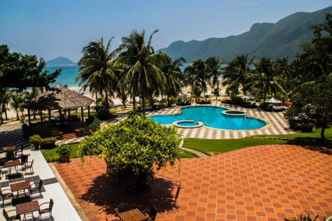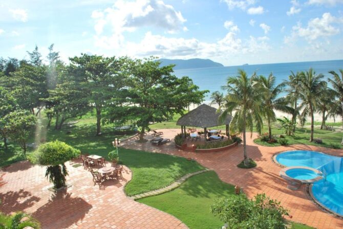Трехзвездочный Con Dao Resort – это живописный курортный отель, расположенный на первой береговой линии. В фонде – 85 номеров. В ресторане накрывается завтрак по системе шведского стола. Доступно диетическое меню. Этот отель выбирают из-за чуткого отношения к организации досуга отдыхающих. В сервисные услуги за отдельную плату входят: сноркелинг, морские прогулки на катерах и каяках, большой теннис, пляжный волейбол, автобусные экскурсии, пляжные вечеринки с ночными дискотеками. К бесплатным услугам относятся трансфер от/до аэропорта, пользование бассейном, парковочные места.