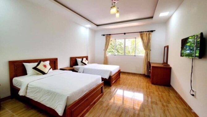 Резиденция SaoConDor Hotel пока не имеет звезд, но уже пользуется спросом у туристов. Здесь предоставляются просторные номера для семейных пар с детьми, люксы для молодоженов, комфортные стандарты для одиноких путешественников. Всего в фонде – 20 номеров, оформленных в азиатском стиле. В каждом из них имеется патио с видом на сад. На территории открыт ресторан вьетнамской кухни. Утром для всех постояльцев накрывается завтрак «Шведский стол». Доставка еды и напитков в номера действует во время работы кухни. Здесь можно искупаться в открытом бассейне, поиграть в дартс, взять автомобиль в аренду. Рядом находятся пляж Дак Док, Американский тир, рестораны, магазины и пивные бары. Владельцы установили более, чем демократичные цены, поэтому номера в отеле следует бронировать заранее. Обычно сюда непросто попасть, так как места распродаются на несколько месяцев вперед.