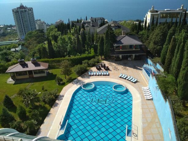 - Это один из крупнейших санаториев Крыма. Здесь есть несколько вид бань, бассейны, соляная комната и просторный тренажерный зал.