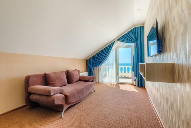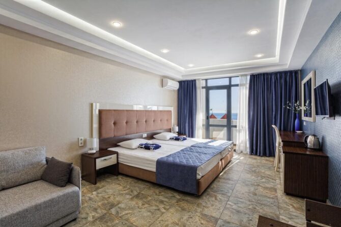 - Просторные и комфортабельные номера. С каждого из них открывается вид на горы или морское побережье.