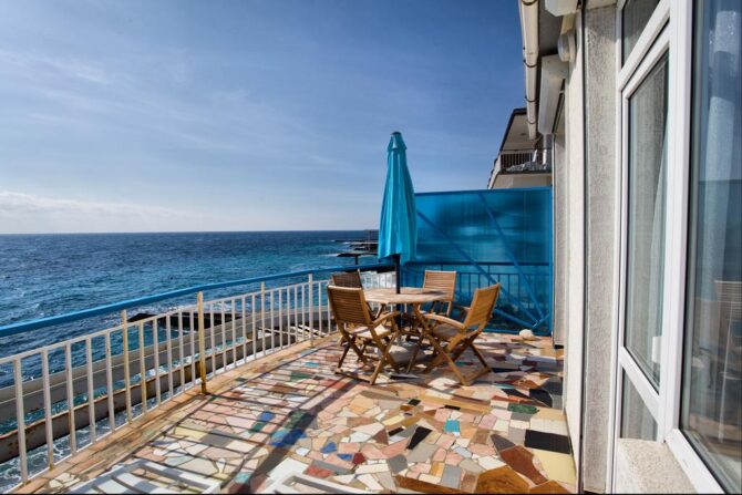 - Корпус «Морской». Он расположен на самом берегу Черного моря. На первых двух этажах двухместные номера с удобствами на этаже. На 3 этаже находятся однокомнатные номера и студии. На 4 этаже – студии с панорамными окнами.