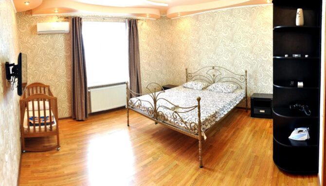 Меблированный двухкомнатный номер площадью 39,6 м2, рассчитанный на 2 взрослых и 2 детей, состоит из спальни с двуспальной кроватью и полутораместным диваном.