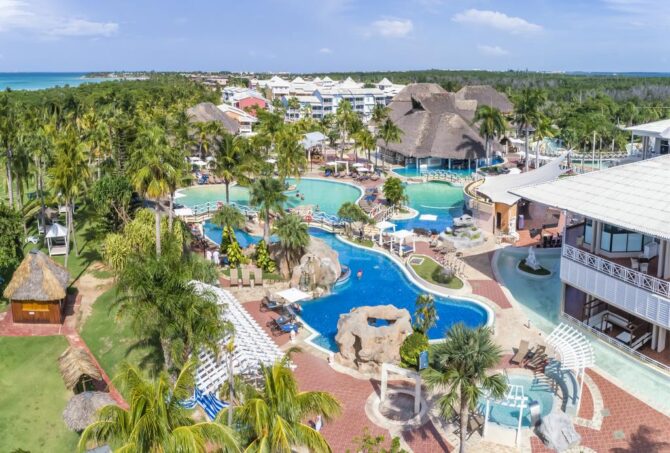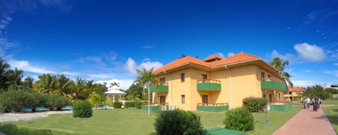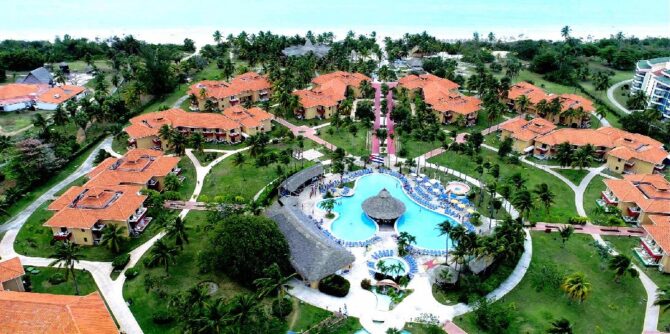 Блоки номеров окрашены в яркие Карибские тона, а внешний дизайн вдохновлен рыбацкими хижинами Варадеро. Здания расположены вдоль линии пляжа, но так как курорт окружен природным парком, деревья загораживают вид на океан.