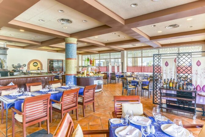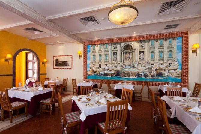 В главном ресторане подают блюда по системе «шведский стол». В двух ресторанах с обслуживанием по меню также подают блюда итальянской и кубинской кухни. Кубинский ресторан Ranchon с видом на бассейн привлекателен открытой планировкой, высокими потолками и кожаной мебелью в испанском колониальном стиле. Итальянский ресторан с панорамными окнами оснащен открытой кухней и печью для пиццы.