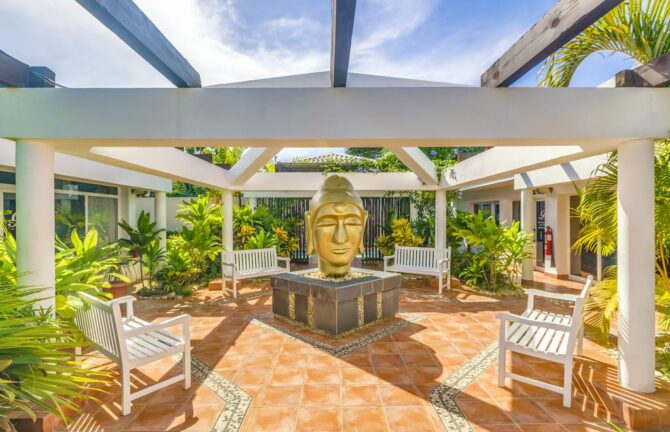 Номерной фонд оформлены в персиковых и бледно-желтых тонах, обставлены мебелью из темного дерева. Покрывала с узором в виде листьев и бирюзовые занавески добавляют контраста. Во всех номерах есть телевизор, мини-холодильник, кондиционер и бесплатная бутилированная вода. Балконы, меблированные белыми пластиковыми стульями и столиками, выходят на сад. Ванные комнаты, отделанные бежевой плиткой, разделены стеклянными дверями. Во всех ванных комнатах есть фен, биде, индивидуальный душ. туалетные принадлежности.