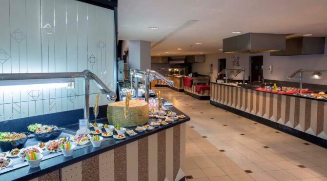- Питание по системе “Шведский стол” разделено на тематические островки: итальянская кухня, морепродукты, мясо, десерты, гриль и др. Каждый гость имеет возможность составить меню в соответствии со своими предпочтениями.