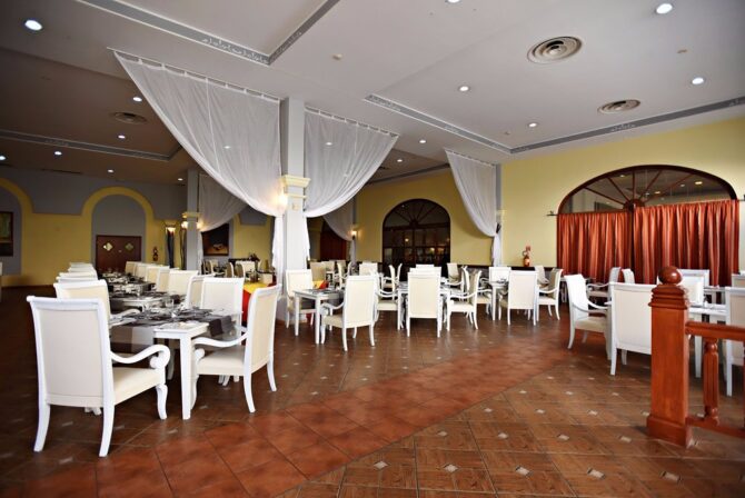 Этот курорт прекрасно подходит для семейного отдыха, есть клуб для детей от 4 до 12 лет. В клубе есть небольшая детская площадка с горками, качелями, открытой игровой зоной и площадкой для игр. Питание гостей осуществляется в ресторане отеля по системе “шведский стол”.