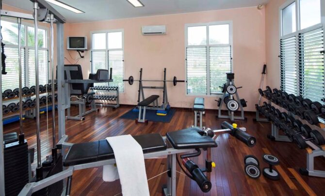 - На территории отеля есть волейбольные и теннисные корты. Гостям предоставляется напрокат спортивный инвентарь. Фитнес-центр, расположенный в отдельном здании у бассейна, оборудован беговыми дорожками, велотренажерами, тренажерами для поднятия тяжестей. Рядом с фитнес-центром находится спа-салон с кабинками для массажа, процедурами по уходу за лицом и парикмахерской.