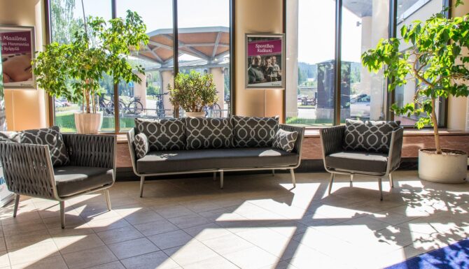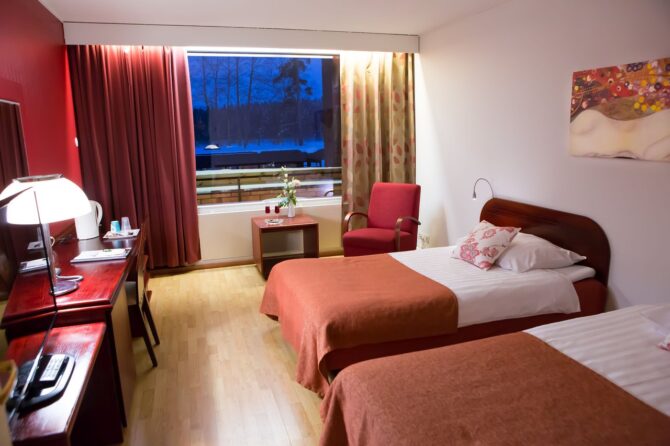 Услуги отеля отвечают всем стандартам отдыха в Финляндии, а теплый интерьер в древесных тонах подчеркивает атмосферу домашнего очага.