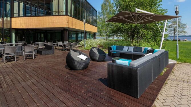 Посетить Финляндию и не отдохнуть в настоящей бане – непростительная ошибка! А у гостей отеля есть уникальная возможность насладиться не только шикарной сауной, но и нырнуть в озеро сразу после процедур.