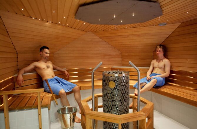 К услугам гостей плавательные бассейны для взрослых и детей, расслабляющие джакузи и ароматические сауны. Изюминкой отеля несомненно является традиционная финская баня, топящаяся «по-черному». А после тепловой процедуры — самое время искупаться в летнем озере или ледяной проруби.