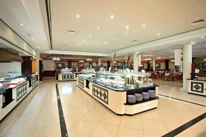 В систему «Все включено» входят: бесплатное обслуживание на пляже, международные анимационные программы для взрослых и детей, мини-бар в номере (минеральная вода, безалкогольные напитки, пиво), Wi-Fi в лобби, детский мини-клуб, не моторизированные водные виды спорта, один бесплатный урок дайвинга, вход в ночной клуб и казино, три ужина в тематических ресторанах (за неделю), 1 час в день катания на катамаране, байдарке, игры на теннисном корте. Еда и напитки доставляются в номер круглосуточно.
