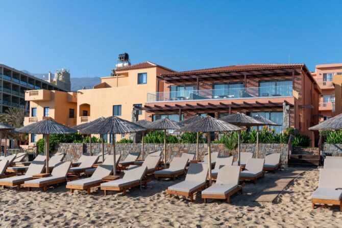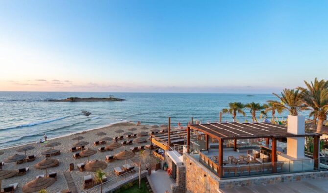 На этом пятизвездочные отели не заканчиваются. Эксклюзивный «Ikaros Beach, Luxury Resort & Spa!» находится на первой береговой линии и готов предоставить отличные условия проживания в 255 стильных современных номерах. Часть из них находится в главном корпусе, остальные расположены в пляжных бунгало. К услугам гостей: спа-салон с профессиональными процедурами по уходу за лицом и телом, 4 бассейна, частный песчаный пляж, ресторан высокой кухни, специализирующийся на средиземноморских и греческих блюдах. Свободное время можно провести на частном песчаном пляже, теннисном корте, на фитнес-центре, или поиграть в гольф на поле. Завтрак накрывается в формате шведского стола. В номерах имеются чайник или кофеварка. На территории открыто 6 разнообразных ресторанов. Они специализируются на греческой, европейской, азиатской, американской, традиционной критской и французской кухнях.