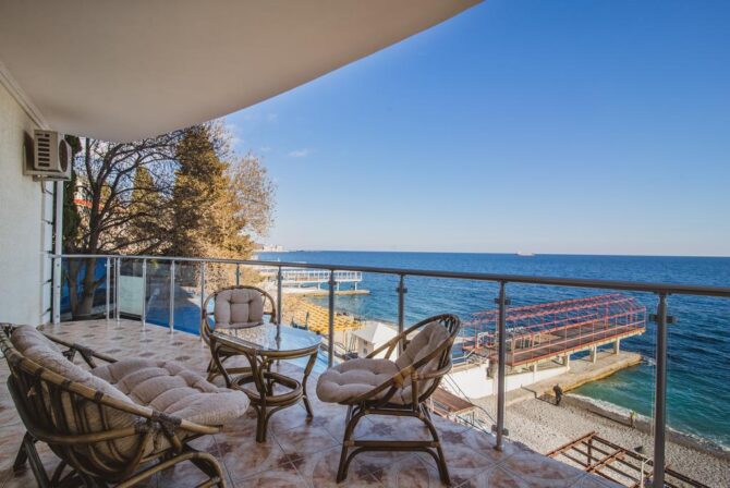 «Конечно, далековато от центра Ялты, но желание купаться в чистом море превыше всего. Что нужно учесть, приезжая сюда с детьми. Первое: нет желания готовить – закажи доставку. Администратор подскажет телефоны ресторанов, которые привезут еду по адресу. Второе — пляж частный, лежаки бесплатные, море кристально чистое. Третье: номера просторные, есть балконы, можно заказать стирку, глажку, чистку.» Юрий, Россия