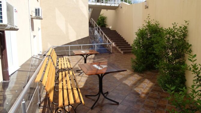 Уютный трехэтажный отель расположен на закрытой и охраняемой территории. Во дворе разбит сад, проложены дорожки для прогулок, обустроена зона для барбекю. Парковка предоставляется бесплатно. Имеются семейные номера. Все комнаты с балконом, собственным санузлом с душевыми кабинами. Расстояние до моря составляет 500 м. Питание не предоставляется. В номерах есть чайные станции с посудой, оборудована общая кухня. За территорией работают кафе и столовые, где можно недорого поесть.