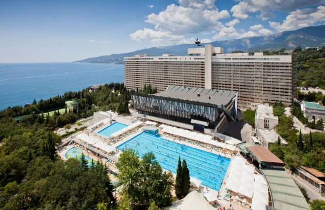 Гостиничный фонд многоэтажного отеля насчитывает 1168 номеров. Это комплекс, который включает в себя всё необходимое для полноценного отдыха. Здание было построено в 1977 году, реконструировано в 2019. Часть территории расположено в Массандровском парке, другая половина на террасном парке, сделанном ландшафтными дизайнерами. 4-звездочный отель принимает гостей круглый год. Расстояние до пляжа составляет 100 м.