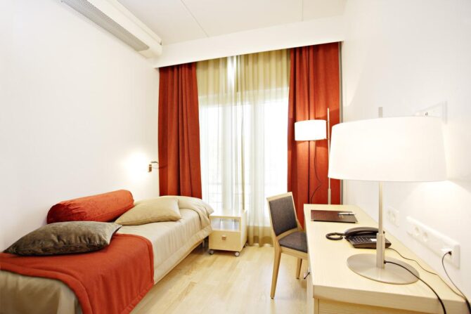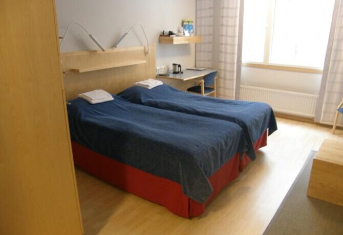Белоснежное здание гостиницы с яркими красно-голубыми балконами расположено в самом центре Миккели. В двух шагах – городская рыночная площадь. Комфортабельные номера, приветливый персонал, исторические достопримечательности – что еще нужно для хорошего отдыха? Конечно, знакомство с местной кухней. В отеле работает превосходный ресторан. Утром всем гостям предлагается континентальный завтрак, а обед и ужин они заказывают самостоятельно.