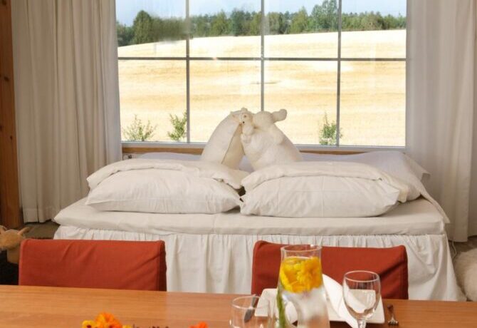 Комфортабельные виллы на берегу озера круглогодично принимают гостей. До центра Миккели – 10 минут езды на автомобиле. Питание не предоставляется. Летом организуются походы по ягодным и грибным местам. По пути Гиды знакомят с лекарственными травами. Их также можно собирать. Отель практикует оздоровительные сеансы по системе Веллнесс. Релаксация проводится с помощью звука «поющих чаш». Посетителям предлагаются звуковое купание, массаж, традиционная и лечебная финская сауна. Сюда приезжают любители здорового образа жизни, чтобы насладиться первозданной природой, тишиной и умиротворением. Особой популярностью пользуется у гостей рыбалка на озере.