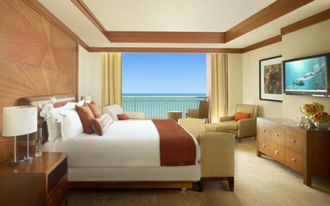 Каждый постоялец The Cove Atlantis, Autograph Collection может посетить один из 21 ресторан, 19 баров, сыграть в рулетку или покер в собственном казино и отдохнуть в лаунджзоне. Каждый номер в этой гостинице, независимо стандарт или люкс оснащены собственным балконом, из которого открывается прекрасный вид на океан. А также в номерах есть жидкокристаллический телевизор, ванная комната с душевой кабиной.