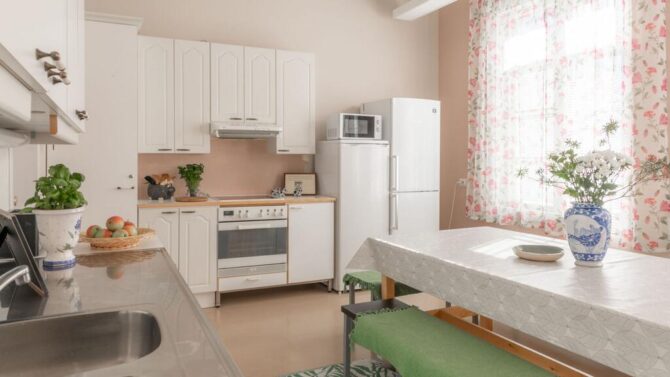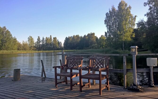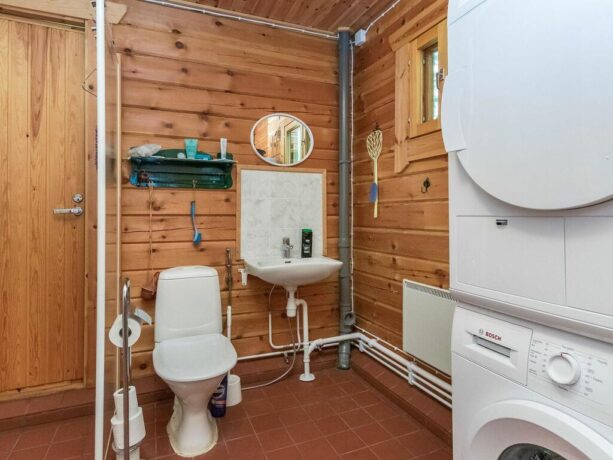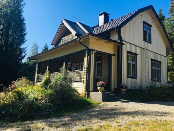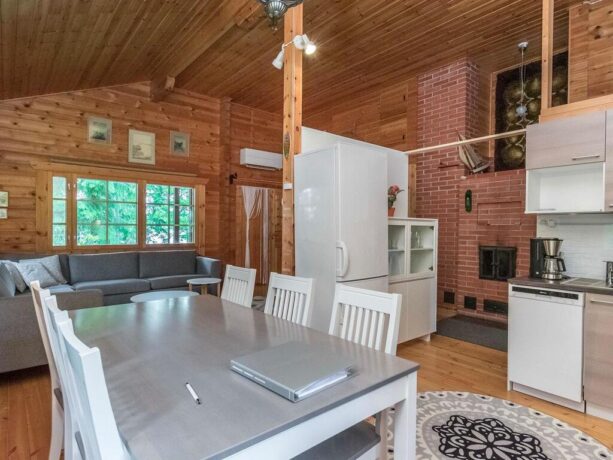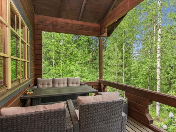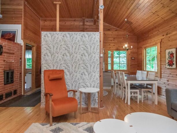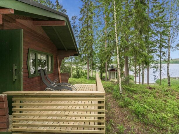 Отдых на природе вдали от цивилизации предлагает классический финский гостевой домик Holiday Home Suviranta. Его построили на берегу озера в лесной зоне. Перед домом обустроена удобная терраса. К воде ведут извилистые тропинки. Сауна установлена отдельно. Прямо после парилки можно спуститься по деревянным ступеням и окунуться в холодные воды горного озера. Интерьер гостевого домика создан по европейским эко-стандартам. В качестве отделочных материалов в основном использовано дерево. Дизайн нельзя назвать на 100% деревенским. По эстетике он ближе к стилистике 80-х годов прошлого столетия. Кухня хорошо оборудована, на улице сделана зона для барбекю.