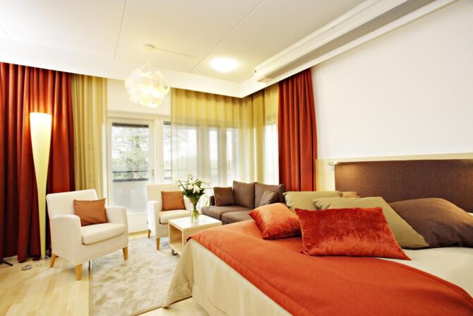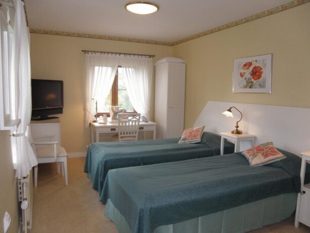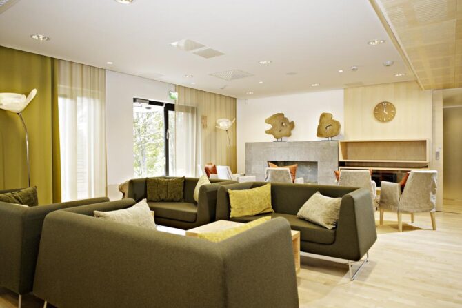Гостиничный комплекс расположен в старинной отреставрированной усадьбе. В округе много спортивных объектов (корты, поле для гольфа, беговые и велосипедные дорожки) и красивое озеро. Завтрак – шведский стол. На берегу озера летом открывается сезонный ресторан. Там же находится сауна. К услугам гостей – крытый тренажерный зал, спа-салон, терраса для отдыха, бар. Персонал подскажет, чем заняться в течение дня и как проще добраться до горнолыжного подъемника.