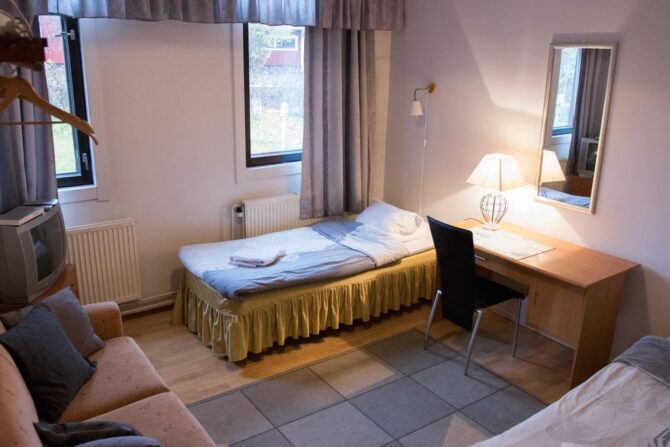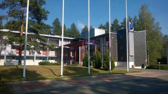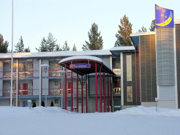 Современный гостиничный корпус расположен в природной зоне на берегу озера. До центра Миккели полтора километра. На автомагистрали на поворот к гостинице указывает яркий баннер. Номерной фонд уютные, для Финляндии очень недорогие. Питание не предусмотрено. Постояльцы готовят сами или питаются в близлежащих ресторанах. Здесь обычно останавливаются семьи с детьми, так как всего в 700 м находится рекреационный парк Калеванкангас. Это центр со спортивными площадками, кортами, тренажерами, лыжными беговыми трассами и велосипедными дорожками.