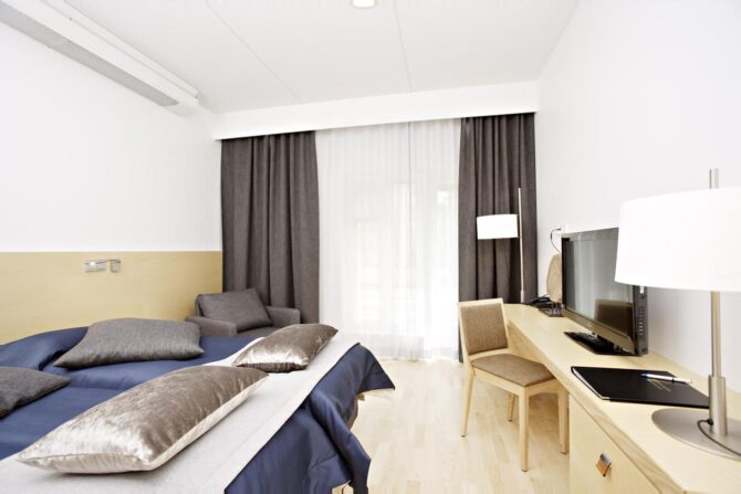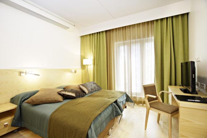 Крупный гостиничный центр расположен в Миккели недалеко от железнодорожного вокзала. Для гостей предлагается 136 комфортабельных номеров и 30 комнат бюджетного уровня оплаты. 29 номеров предназначено для проживания с домашними питомцами. В оплату можно включить завтрак, который подается в ресторане отеля. В ассортименте безглютеновые блюда и шведский стол. В холле круглосуточно работает продуктовый магазинчик. По возвращению с горнолыжных склонов гости проводят время в сауне, бассейне, ресторане или террасе. Детям приготовлена игровая зона. Для личного транспорта предоставляется бесплатная открытая парковка. Оставшись в городе, можно посетить местные достопримечательности. В шаговой доступности расположен Музей финской пехоты, торговая площадь, другие исторически значимые места.