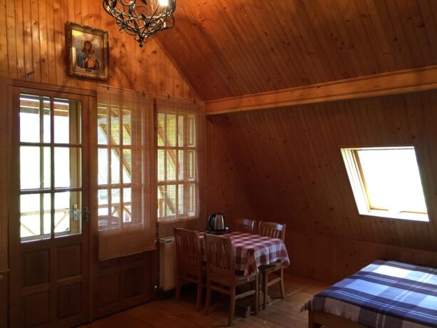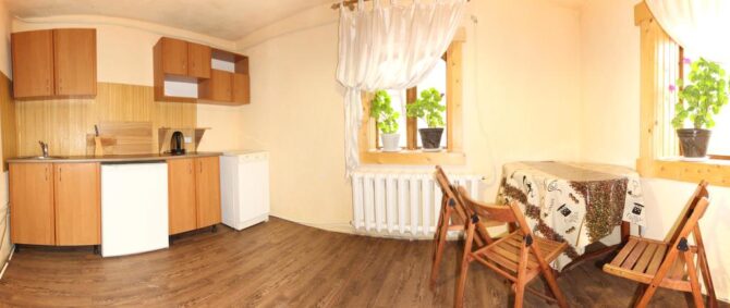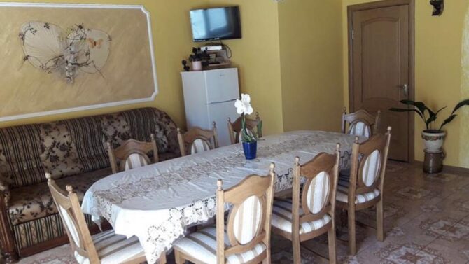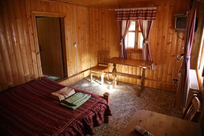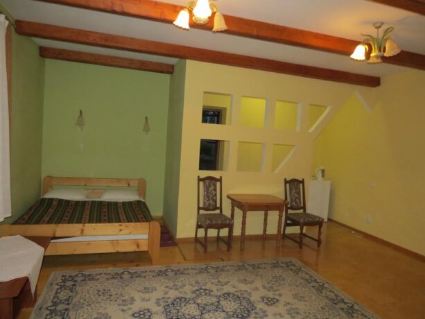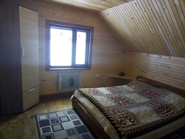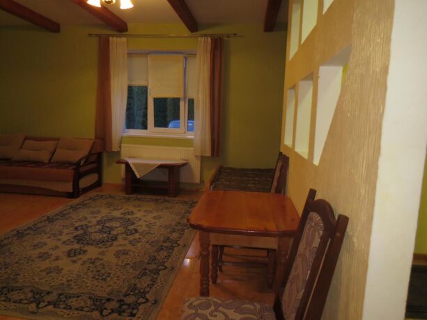 В отличие от предыдущего дома, этот участок находится на отдалении от центра, в очень тихом районе. Здесь начинается заповедная зона – Петричила. Из окон апартаментов открывается чудесный вид на реку и лес. Хозяйка всегда подскажет, куда лучше сходить и что посмотреть, зимой даст на прокат лыжное снаряжение. До шешорского подъемника – 200 метров. Отсюда в летнее время расходятся десятки туристических пеших маршрутов к пещерам и водопадам, историческим и памятным местам. Еду гости готовят самостоятельно на общей кухне. Во дворе есть мангал и все принадлежности. За проживание домашних животных в отеле дополнительная плата не взимается.