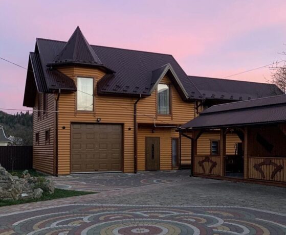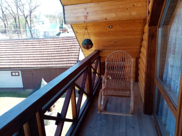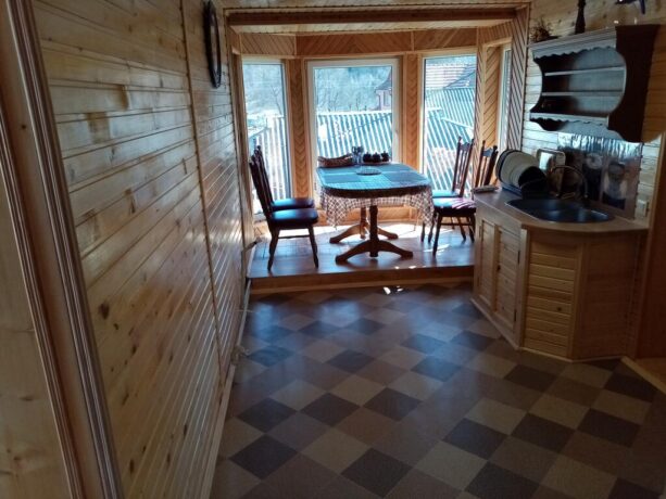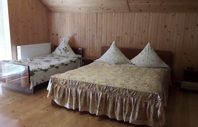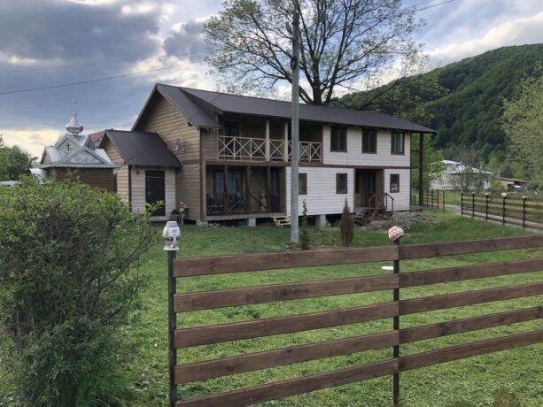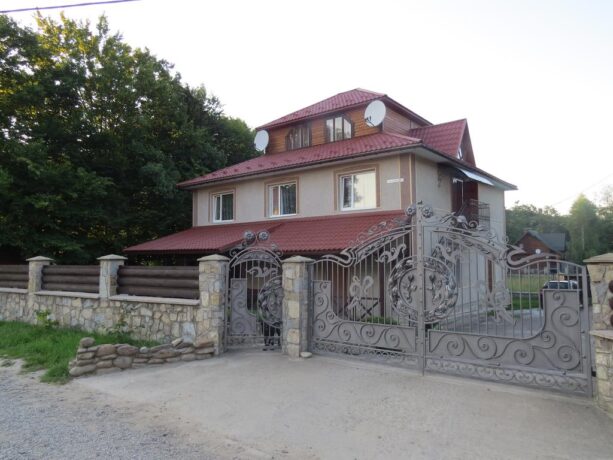 Трехэтажная усадьба расположена в 200 метрах от центра села. Для расселения предоставлено 5 благоустроенных номеров: 2 двухместных и 1 семейный. Еще одна спальня есть на мансарде. Утром хозяйка подает полный английский завтрак. До подъемника ехать 3 км. Вечером можно посетить легендарный ресторан гуцульской кухни «Аркан», который находится в 100 метрах от дома. Хозяин позиционирует гостевой дом в формате «ночлег – завтрак». В течение дня гости заботятся о питании самостоятельно. Для приготовления пищи оборудована общая кухня, есть зона барбекю, рядом работает кафе/бар «Над гуком».