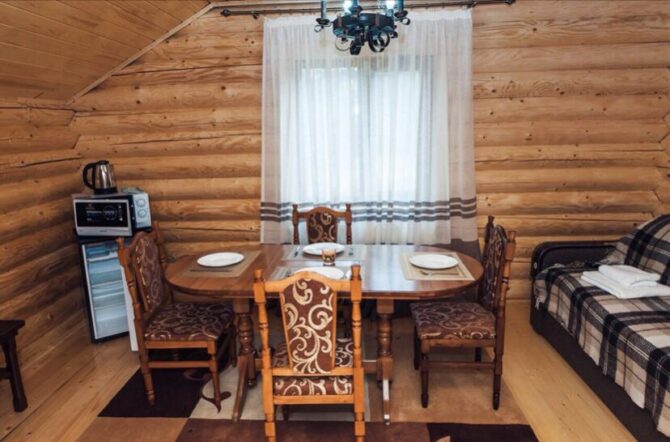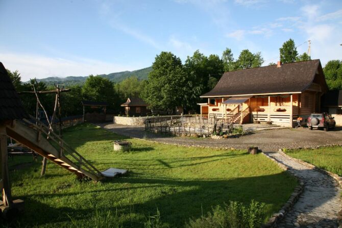Настоящее гуцульское подворье принимает гостей в течение всего года. Комплекс из одноэтажных деревянных домиков находится на территории Национального парка «Гуцульщина». Для гостей оборудованы меблированная терраса, мангальная зона, общая сауна. Питание организуется самостоятельно, а насчет досуга можно договориться с сотрудниками. Они организуют пешие походы, верховую езду, велосипедные прогулки, лыжные занятия, рыбную ловлю. До подъемника – 1 км. Доставка продуктов осуществляет по заказу постояльца.