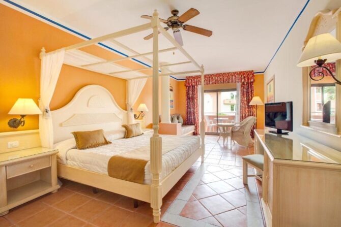Большой и живописный курортный комплекс Majestic Colonial Punta Cana — All Inclusive обеспечивает сервис категории 5 звезд. В его фонде 648 номеров, в которых все обустроено по высшему классу: кровать размера «king-size» или две двуспальные кровати в зависимости от категории номера (при наличии возможности), полы из европейского мрамора, мини-бар, пополняемый ежедневно, ванная комната с гидромассажной ванной, отдельная душевая кабина с 3 функциями (дождь, массаж, мягкий), фен, кондиционер, потолочный вентилятор, спутниковое телевидение, диван, телефон, бесплатный Wi-Fi, халат и тапочки, отдельная дверь для обслуживания номеров, бутылка шампанского по прибытии, сейф, кофемашина, письменный стол, утюг, балкон или терраса со стульями. 24 часа в сутки обеспечивается обслуживание по системе «Все включено». К услугам гостей – 7 ресторанов (один из них круглосуточный), 11 баров, СПА-центр, просторный тренажерный зал, 7 бассейнов, спортивные площадки. Поле для гольфа находится в 5 минутах езды. Виндсерфинг, катамаран, снаряжение для подводного плавания, байдарки, доски для буги-вуги предоставляются бесплатно.
