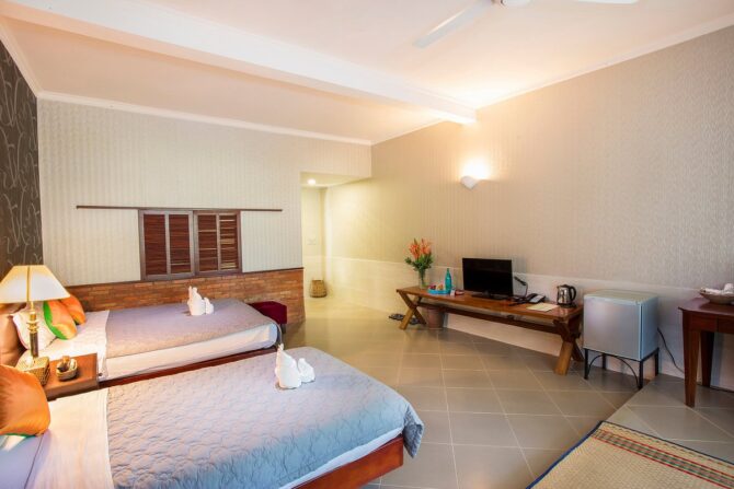 Примерно в 350 м к югу от Jungle Lodge находится территория отеля «Грин Бэмбу». Любители тропической природы и туристы, ищущие уединения и спокойствия, останутся довольны отдыхом и проживанием в Green Bamboo. Отель предлагает выбор из 25 кирпичных и бамбуковых бунгало, оборудованных мебелью и электрическими приборами, необходимыми для комфортного времяпрепровождения.