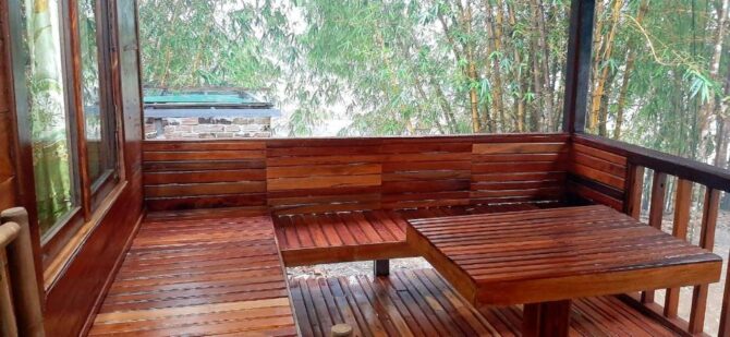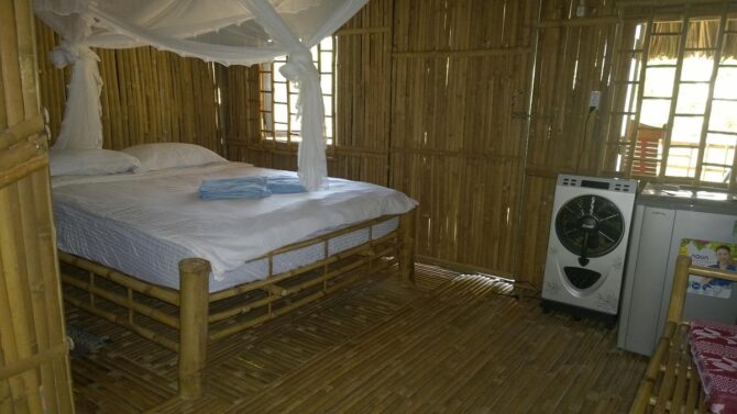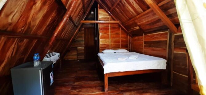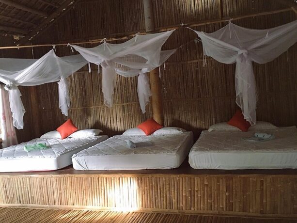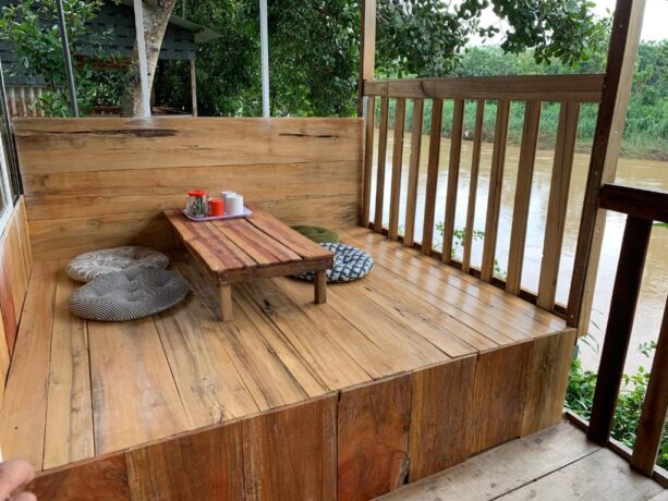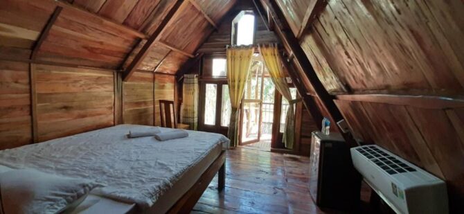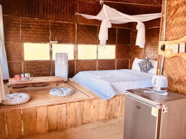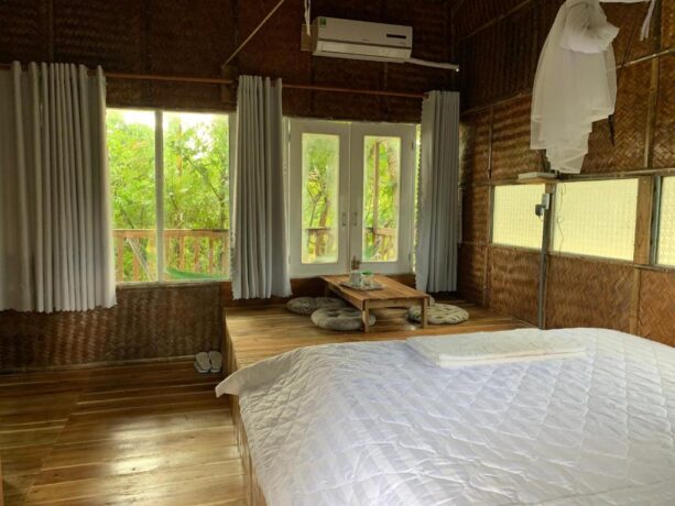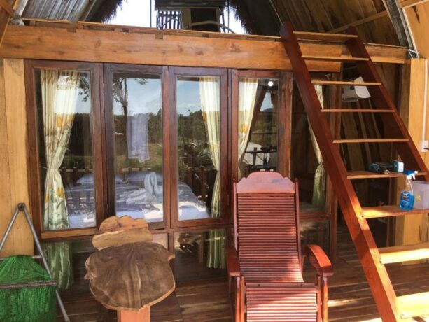 Для гостей отеля работает небольшой ресторан. Отсутствие стен и высокая деревянная крыша расширяют пространство зала гастрономического заведения. Каждый бунгало оборудован просторной террасой, на которой установлены гамак и кресло. Для гостей отеля доступны несколько разновидностей досуга:
