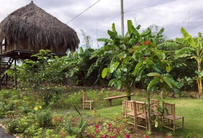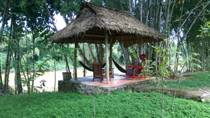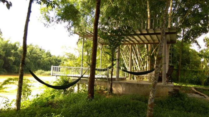 - зеленая зона отдыха, окруженная бамбуковыми деревьями, к которым подвешены гамаки;