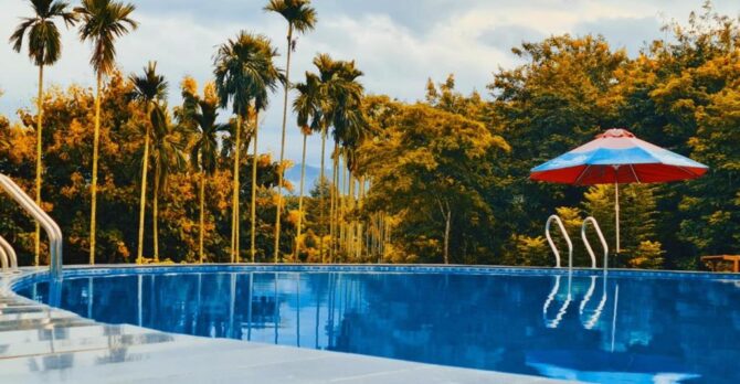 - пейзажный бассейн, откуда хорошо просматриваются окружающие холмы, поросшие тропическими растениями.