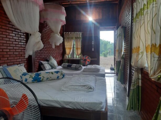 Для любителей отдыха в экзотических условиях вполне подойдет отель «Санни Филд», расположенный в 700 м к северо-востоку от Green Hope Lodge. «Экологичный дом на сваях (опорах)» – так можно перевести вторую половину названия гостиницы, находящейся в месте, где безупречно создана обстановка отдаленной вьетнамской деревни. Для отдыхающих доступны 11 бамбуковых бунгало, оборудованных необходимыми бытовыми приборами и удобной мебелью.