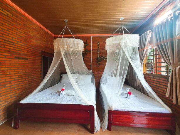Jungle Lodge – превосходный вариант для туристов, предпочитающих отдых в сельской местности в атмосфере безмятежности и в окружении джунглей. Для гостей доступен платный трансфер из Хошимина. Стоимость – от 1,8 до 2,8 млн донгов (78–122 $). Для отдыхающих работает несколько досуговых и оздоровительных объектов: