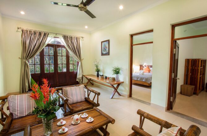Отель Rice Straw идеально подходит тем туристам, кто мечтает погрузиться в атмосферу вьетнамского села. Деревянные мосты, природные ландшафты, где не чувствуется вмешательства человека, спокойно текущая река – все это способствует созданию обстановки, типичной для сельской местности. Завтраки подаются в бунгало, где отдыхают и проживают гости отеля.