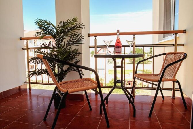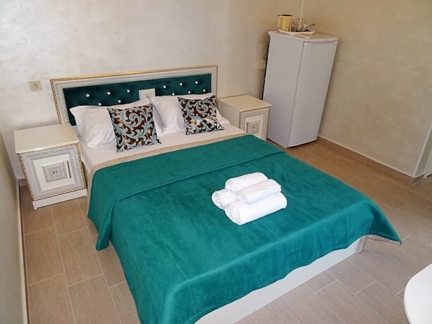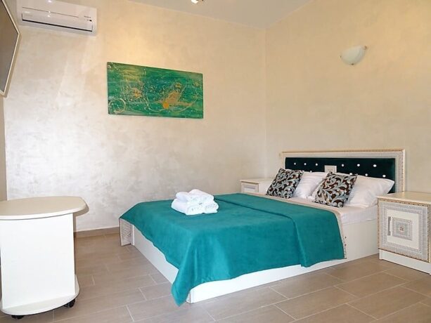 Четырехэтажный дом находится на закрытой территории в 400 метрах от моря. Это бюджетный вариант для проживания даже в высокий сезон. Семьям рекомендуется бронировать двухкомнатные апартаменты с кухней. В этом случае всегда будет возможность приготовить или подгореть еду для ребенка. В некоторых номерах предусмотрены балконы. Во дворе расположен бассейн и шезлонги. Завтрак входит в стоимость проживания, обед и ужин готовятся по заказу. В сервис входит платный прокат велосипедов, услуги прачечной, автостоянка, трансфер.