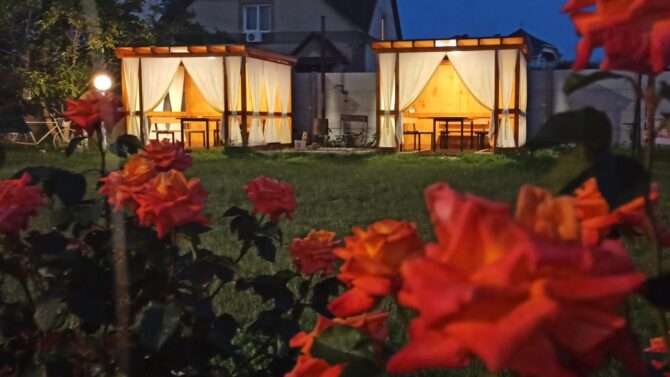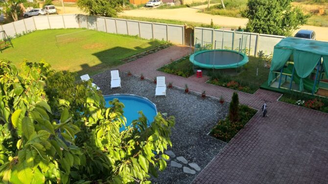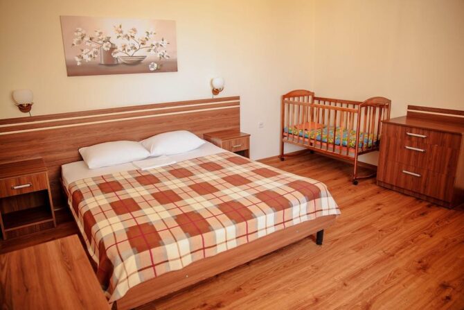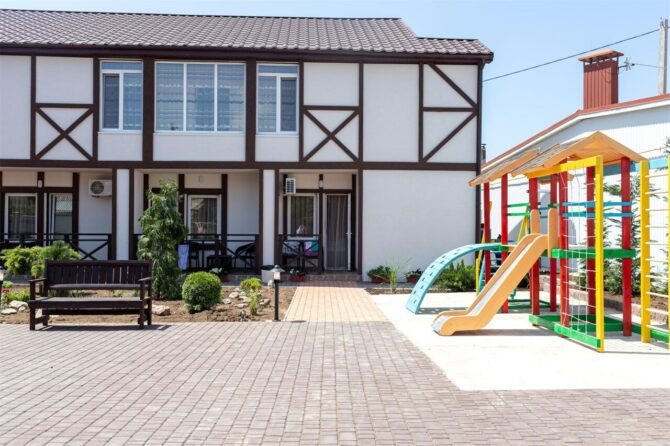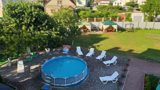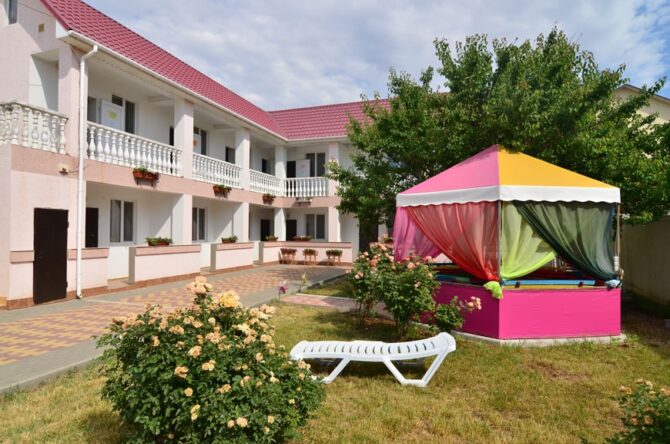 Если есть желание сэкономить, то в 15 минутах ходьбы от моря находится гостевой дом «Ромполь» с отличными условиями проживания и очень приемлемыми ценами. Все номера с удобствами и возможностью установки дополнительных спальных мест. По запросу бесплатно предоставляются горшок, детский стульчик, бортик на кровать, фильмотека. Во дворе установлены детские батут и лабиринт, каркасный бассейн, беседки с мангалами, развешаны гамаки. У администратора всегда можно взять игрушки и настольные игры, дартс, бадминтон, книги. В здании оборудована общая кухня. Среди платных услуг: