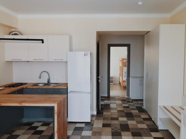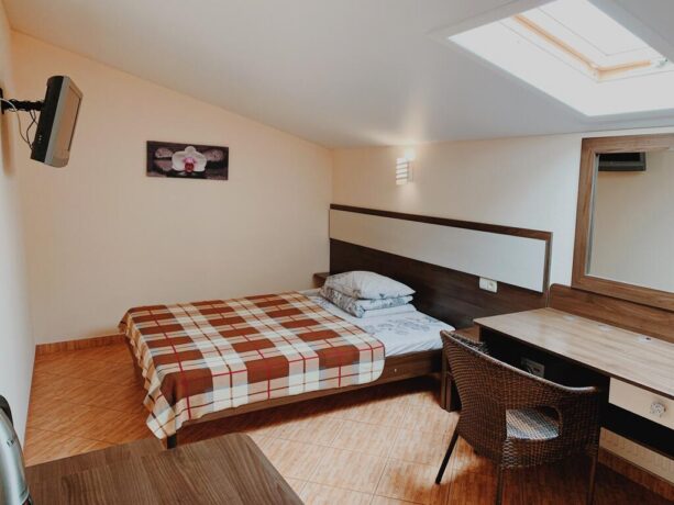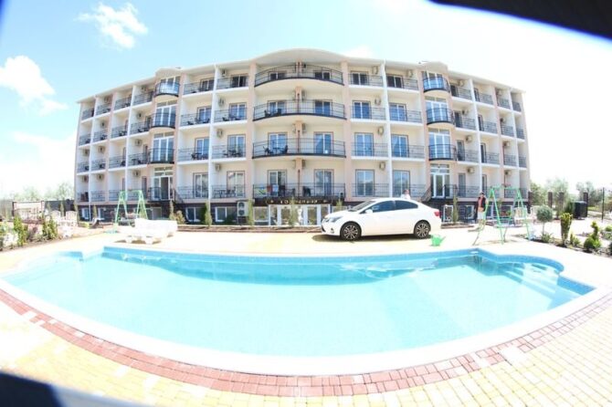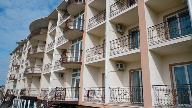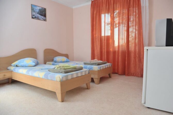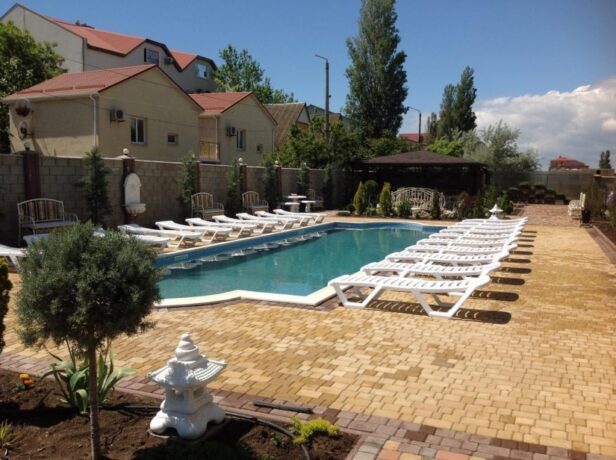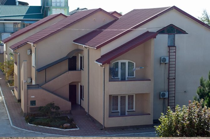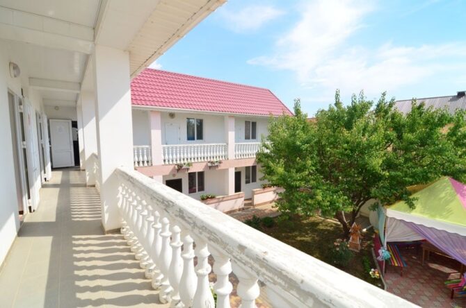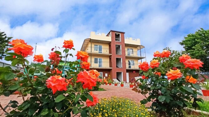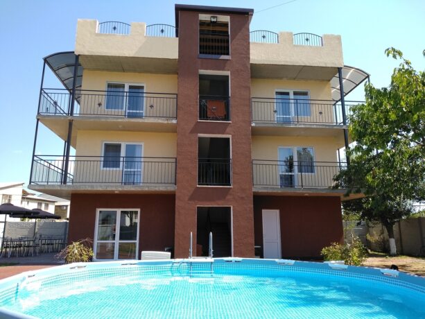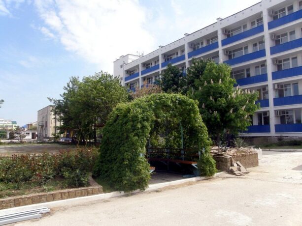 Трехэтажный корпус находится на открытой, но очень ухоженной территории. Все номера с балконами и установленной на них легкой уличной мебелью. До моря 10 минут ходьбы. Территория отеля ухоженная, чистая, полностью закрытая. В шаговой доступности находятся магазины, аптека, продуктовый рынок. Питание организуется в местном ресторане. Завтрак входит в оплату номера. Обед и ужин заказывается по меню. Хорошим вариантом для проживания родителей с детьми станут 3-местные и 2-х комнатные номера, апартаменты. Всего в фонде – 29 номеров. Во дворе отеля установлены беседки с мангалами, имеется крытый бассейн.