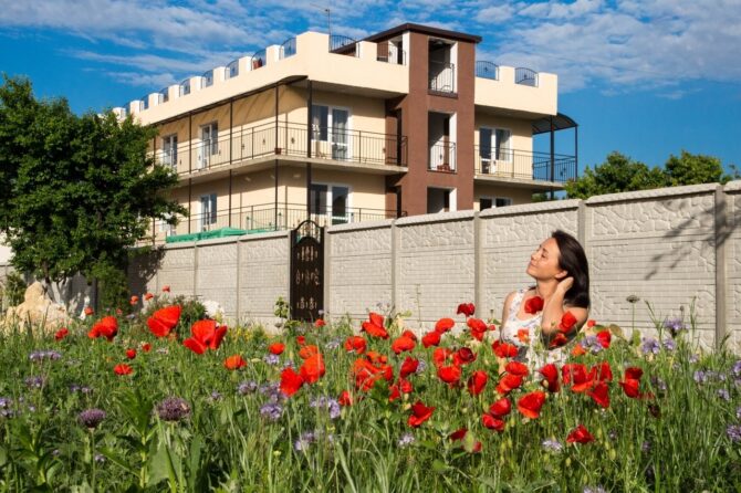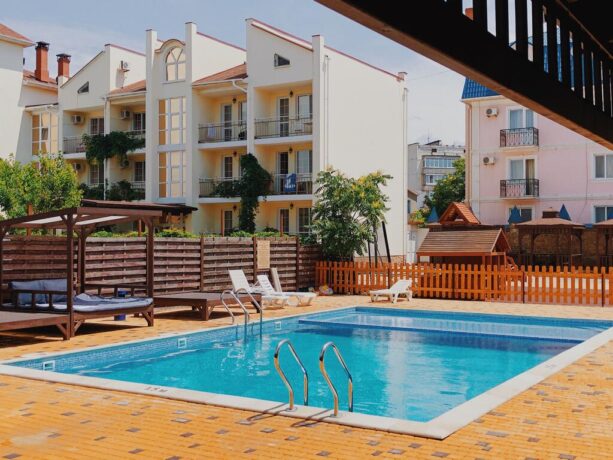 Отель находится в 200 метрах от пляжа. Новый жилой корпус, бассейн во дворе с детской зоной купания, собственный сад – далеко не все преимущества этого места. Все номера предназначены для некурящих. В здании оборудован детский уголок, на улице есть площадка для игр. Предоставляется детское меню, созданы условия для людей/детей с ограниченными возможностями. Имеется номер с кухней. Хозяева позаботились о спокойном сне своих гостей, установив звукоизоляцию в комнатах и постелив ортопедические матрасы на кровати. Питание не входит в стоимость, но всегда можно заказать любимые блюда по меню. Здесь принимают с домашними питомцами.