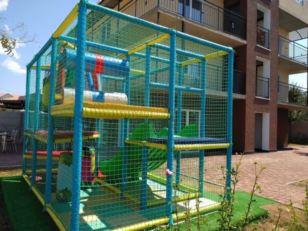 Несмотря на то, что отель находится в 15 минутах ходьбы до знаменитого пляжа «Палуба», он является востребованным для семейного отдыха. В жилых корпусах расположено 87 номеров разного уровня комфортности. Для размещения семей предлагаются Стандарт-комфорт, Стандарт-комфорт с кухней, двухкомнатный семейный, студия, люкс, апартаменты, семейное бунгало. В них могут разместиться до 4-х человек. На территории открыта столовая с быстрой линией раздачи. Завтрак включен в стоимость номера. Кроме проживающих на вилле, сюда приходят кушать гости из других отелей. Во дворе обустроен бассейн с небольшим водопадом, установлена детская площадка с качелями.