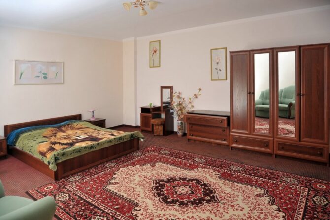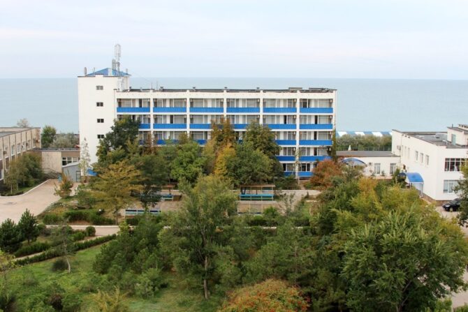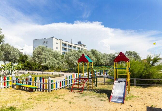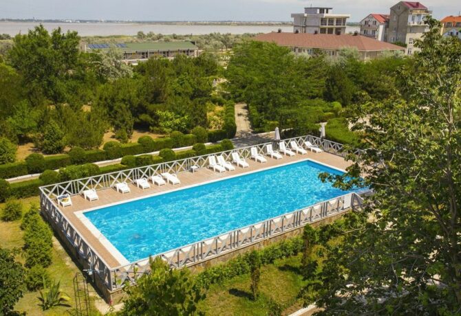 Номерной фонд пансионата рассчитан на одновременный прием до 200 гостей. Территория закрытая, охраняемая. При отеле работает современно оборудованный медицинский центр. Лечение предоставляется только с 18 лет. Детям до 12 лет предоставляются скидки на проживание. Гости обеспечиваются 3-разовым питанием (блюда на выбор). До пляжа – 5 метров. Рядом с комплексом есть автобусная остановка. Для детских игр предусмотрена открытая площадка.